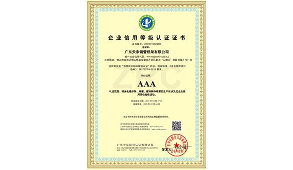 天來管槽憑雄厚的企業(yè)實力與品牌市場效應,不斷的引進先進的生產(chǎn)技術,一流的生產(chǎn)檢驗設備,專業(yè)化的人才,相繼獲得國家“高新企業(yè)認證”,廣州市質(zhì)量監(jiān)督檢驗局頒發(fā)的 “CTA品質(zhì)驗證證書”,“產(chǎn)品檢驗報告” 以及榮獲 “AAA級標安全生產(chǎn)準化證”,“中國工程建設首選產(chǎn)品”,“五星品牌認證證書”,“五星售后服務認證證書”,“AAA企業(yè)信用等級證書”,“采用國際標準認證證書”,“國家防火建材等級證書” 等榮譽。